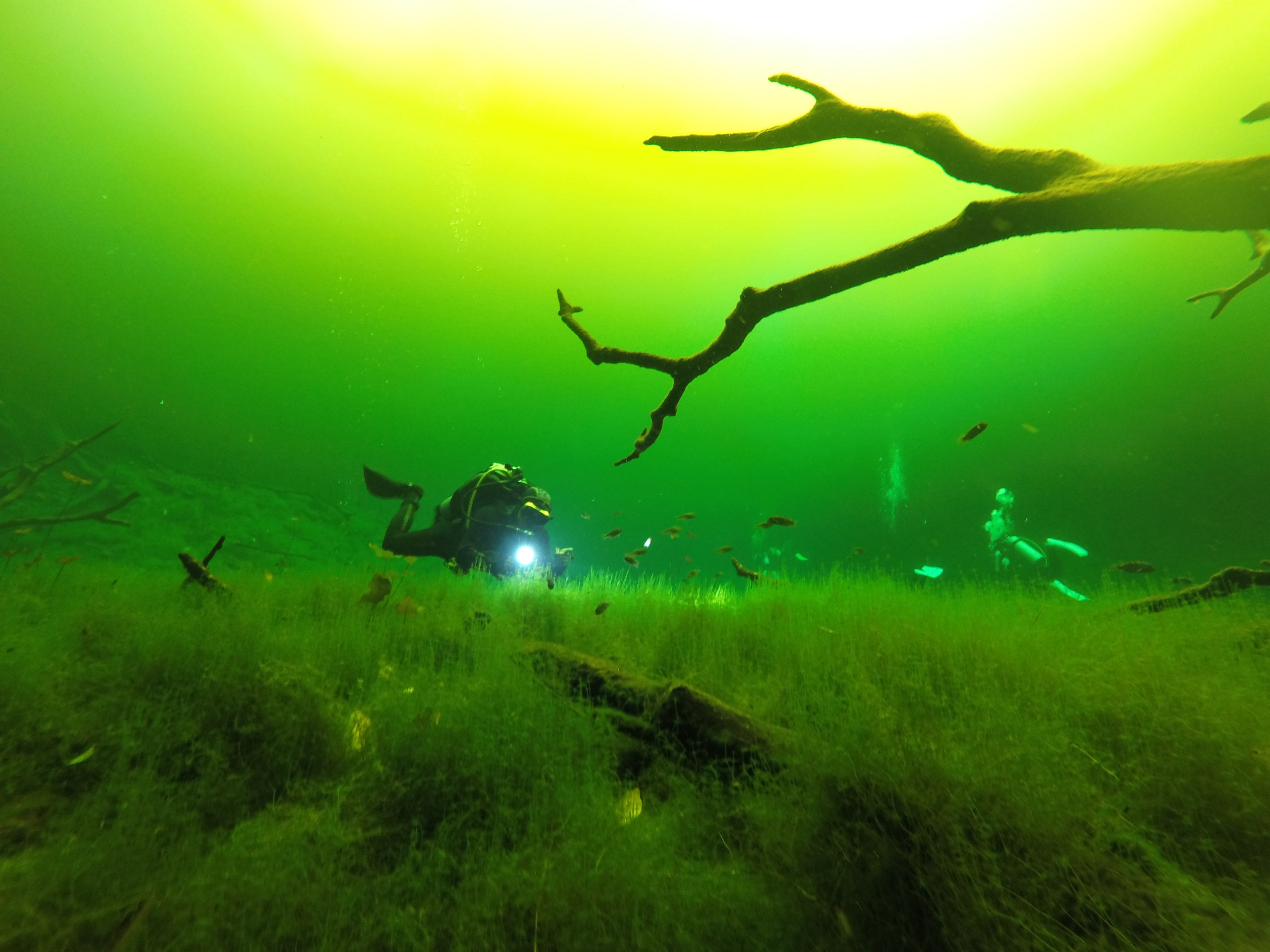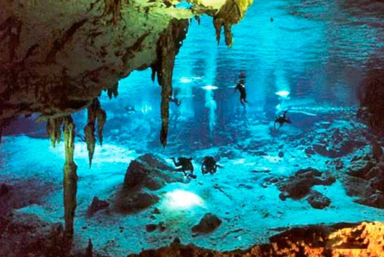 不过,最某名的还是要属墨西哥尤卡坦半岛的洞潜。之所以在全世界都这么出名,原因之一是它独特的地质条件形成的cenotes可以让潜水员在相当安全的情况下很大程度上体验到洞穴潜水的魅力,换句话说,在这里只要你拥有相当于PADI开放水域潜水员(OW)资格就可以进入绝大部分的潜点潜水,而得到的乐趣却绝对不止如此。