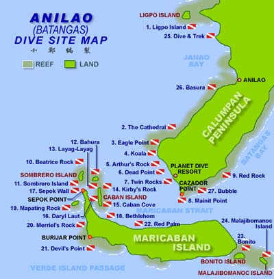 阿尼洛(Anilao)位于菲律宾吕宋岛的卡伦潘半岛八打雁湾(Batangas Bay),是距离马尼拉最近的潜水地,也是菲律宾潜水早期的发源地,从马尼拉机场开车只需要2-3 小时即可抵达。阿尼洛以“垃圾潜水“闻名,那里小东西特别多,是菲律宾的微距天堂。